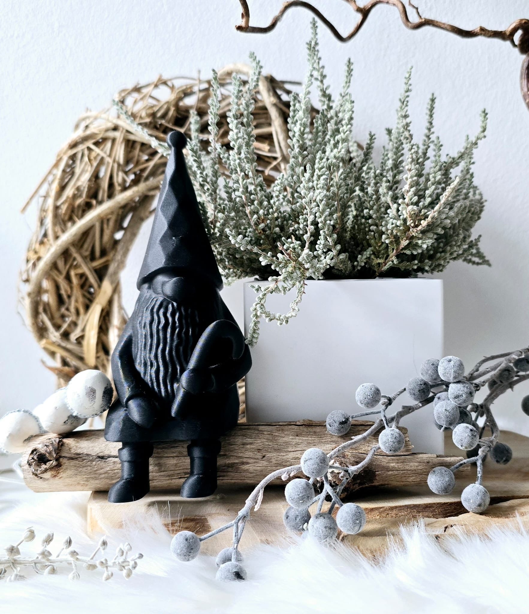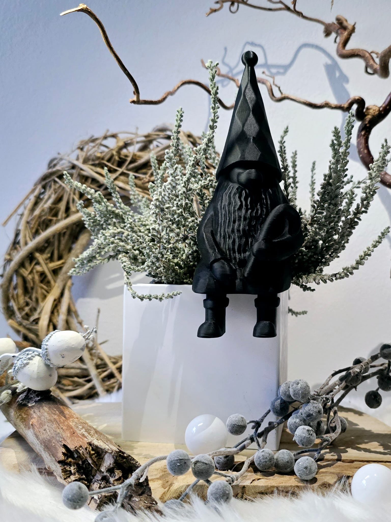 Ob auf einem Regal oder einer Tischkante – dieser Wichtel sorgt überall für eine gemütliche, winterliche Atmosphäre.